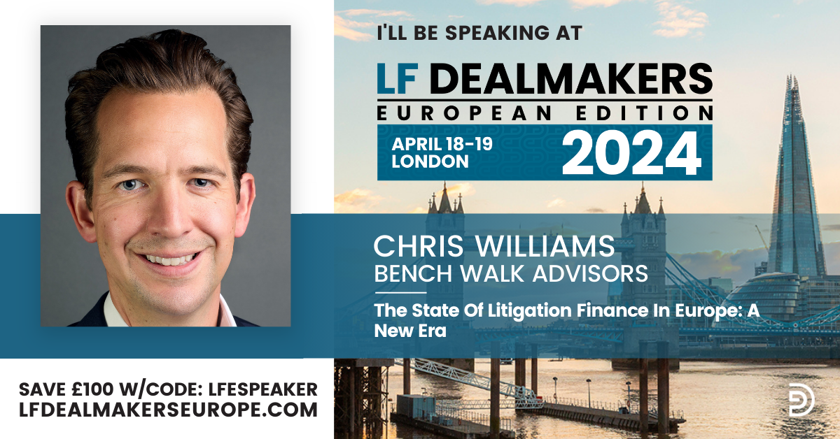 Bench Walk’s Vice President Christopher Williams will also speaking in "‘The State of Litigation Finance in Eurpoe: A New Era” panel, alongside leading professionals Natasha Pearman of Milberg London LLP, and Stuart Carson of Stewarts Law.
